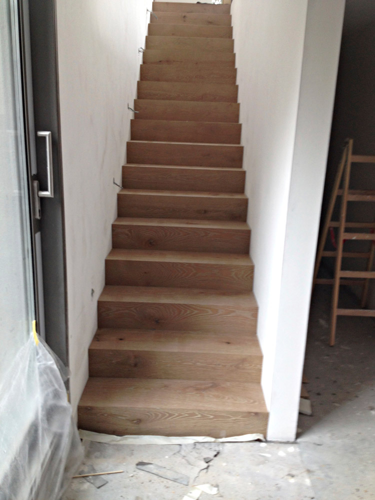 In heutigen Neubauten werden immer häufiger Rohbetontreppen eingebaut, bei denen man wahlweise Fliesen oder Holzstufen einbauen kann.